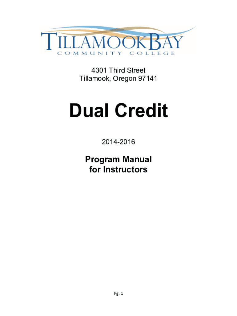 4301 Third Street Billhook, Oregon 97141Dual Credit 20142016Program Manual for Instructors. 1Table of Contents Table of Contents ..................................................................................................................