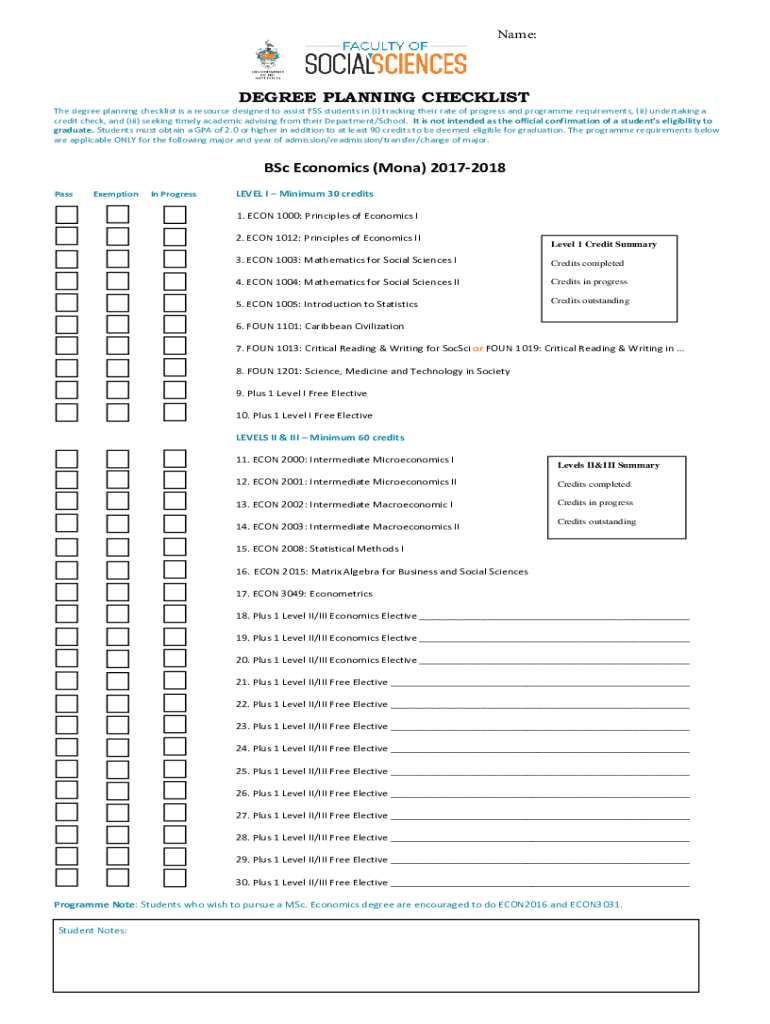Get the free DEGREE PLANNING CHECKLIST - mona.uwi.edu
