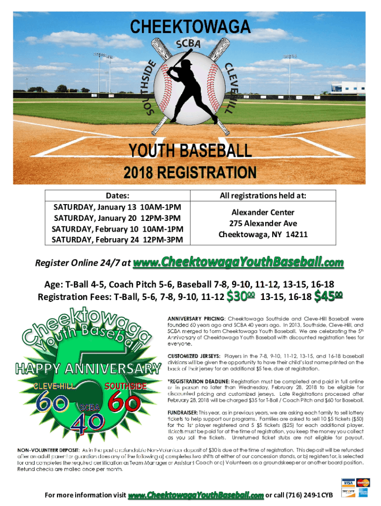 2018 REGISTRATION Dates: SATURDAY, January 13 10AM1PM SATURDAY, January 20 12PM3PM SATURDAY, February 10 10AM1PM SATURDAY, February 24 12PM3PMAll registrations held at: Alexander Center 275 Alexander