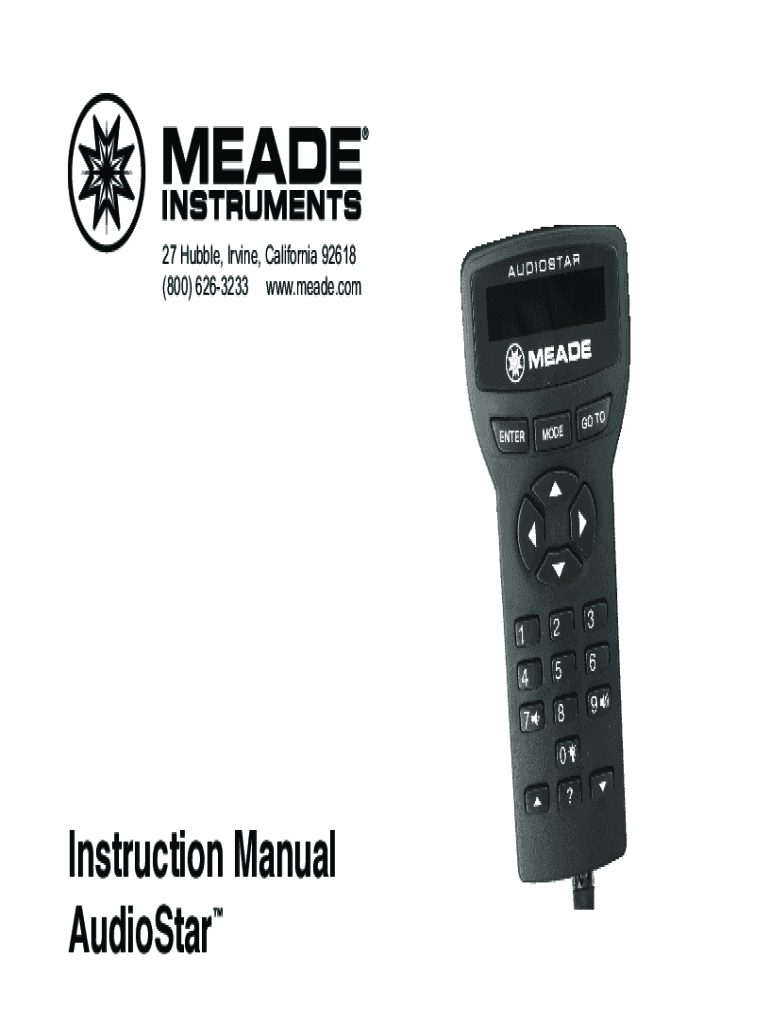 27 Hubble, Irvine, California 92618 (800) 6263233 www.meade.comInstruction Manual Audio Star 2Contents Sandbox Feature......................................4 Introduction..............................................5