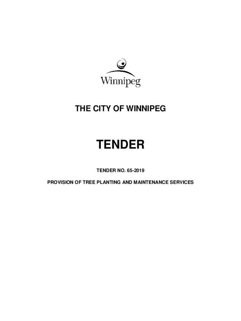 THE CITY OF WINNIPEGTENDER TENDER NO. 652019 PROVISION OF TREE PLANTING AND MAINTENANCE Services City of Winnipeg Tender No. 652019Table of ContentsTemplate Version: S220190115 S B NOTABLE OF CONTENTS