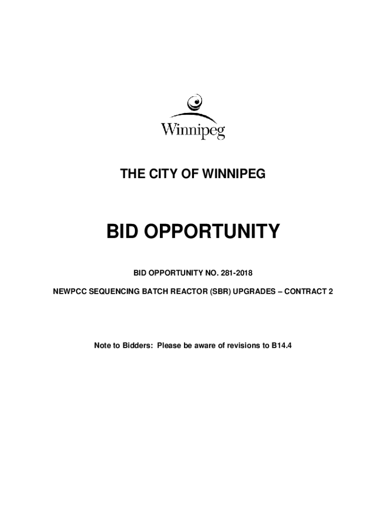 NEW PCC SEQUENCING BATCH REACTOR (SBR) UPGRADES CONTRACT 2Note to Bidders: Please be aware of revisions to B14.4The City of Winnipeg