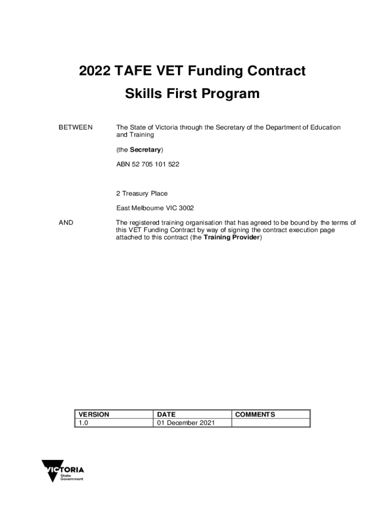 Get the free 2022 TAFE VET Funding Contract Skills First Program