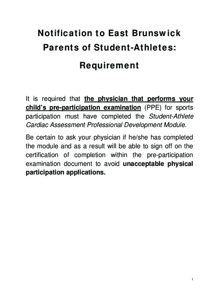 Notification to East Brunswick Parents of StudentAthletes: Requirement It is required that the physician that performs your children participation examination (PPE) for sports participation must have