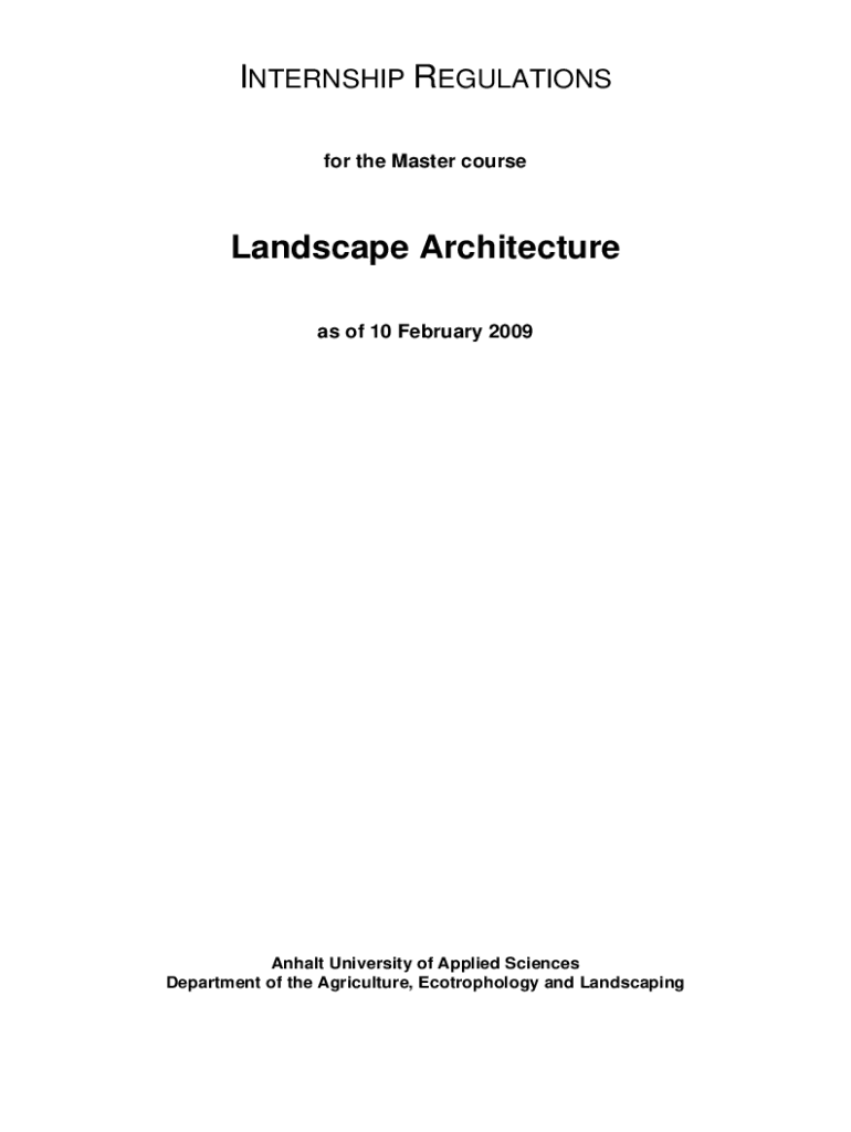 INTERNSHIP REGULATIONS for the Master courseLandscape Architecture as of 10 February 2009Anhalt University of Applied Sciences Department of the Agriculture, Ecotrophology and LandscapingContents