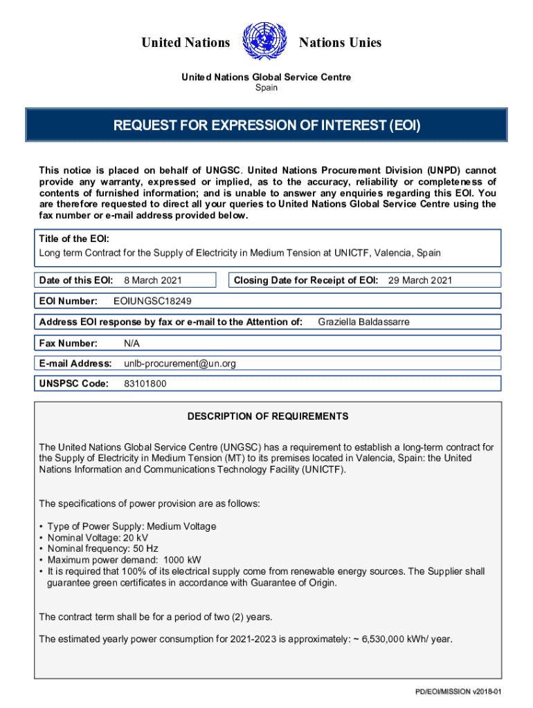 United NationsNations Unrequited Nations Global Service Center SpainREQUEST FOR EXPRESSION OF INTEREST (EOI) This notice is placed on behalf of UN GSC. United Nations Procurement Division (NPD) cannot