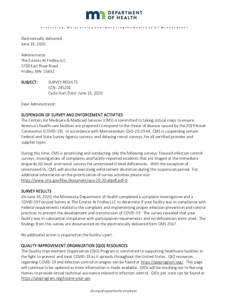 Get the free The Estates At Fridley LLC - Minnesota Department of Health