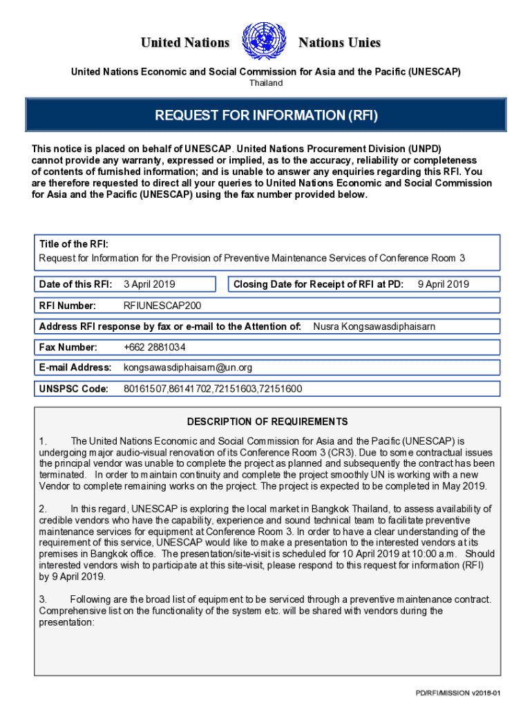 United NationsNations Unrequited Nations Economic and Social Commission for Asia and the Pacific (UNESCAPE) ThailandREQUEST FOR INFORMATION (RFI) This notice is placed on behalf of UNESCAPE. United