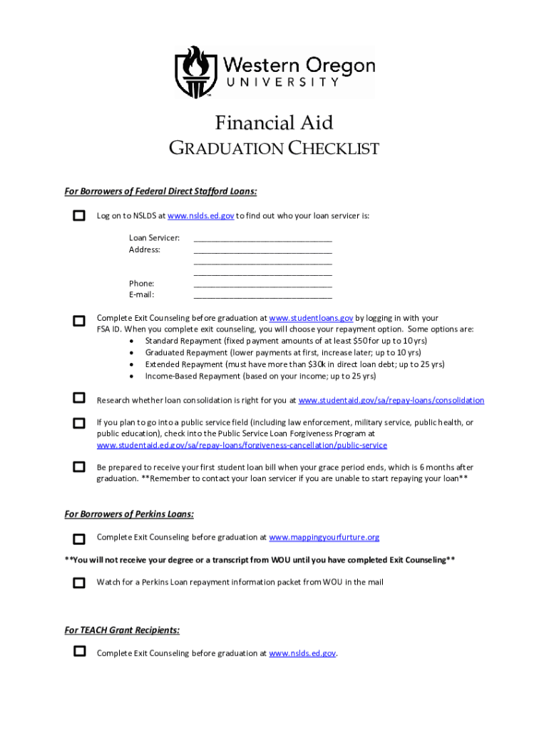 How to fill out financial aid graduation checklist