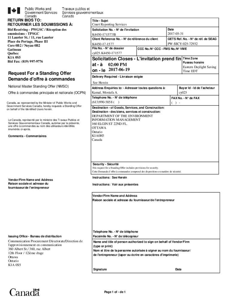 11RETURN BIDS TO: RETURNER LES COMMISSIONS :Title Outbid Receiving PW GSC / Reception DES sou missions TP SGC 11 Laurie St. / 11, rue Laurie Place du Portage, Phase III Core 0B2 / Royal 0B2 Gatineau