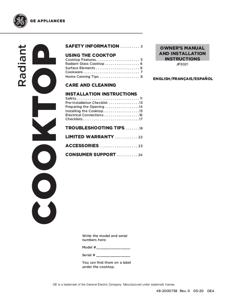 Get the free products.geappliances.comMarketingObjectSAFETY INFORMATION 3 Radiant Glass Cooktop 6...
