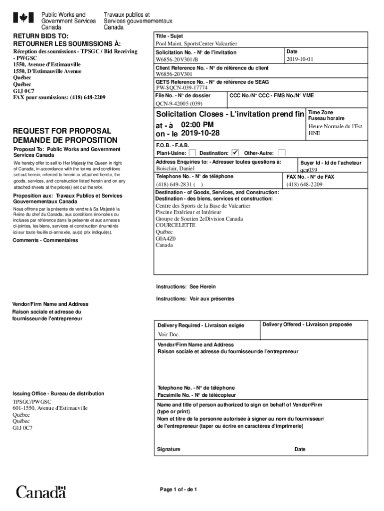 Get the free K1A 0S5 Solicitation Closes - L'invitation prend fin Bid Fax: (819) 997 ...