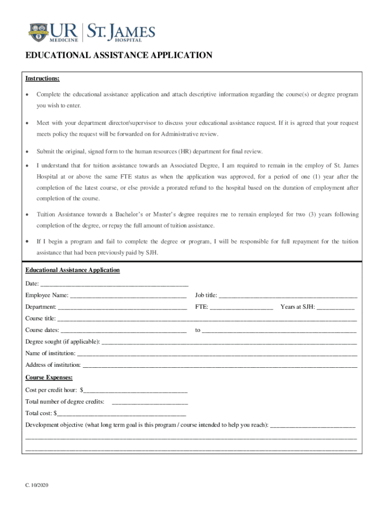 EDUCATIONAL ASSISTANCE APPLICATION Instructions: Complete the educational assistance application and attach descriptive information regarding the course(s) or degree program you wish to enter. Meet