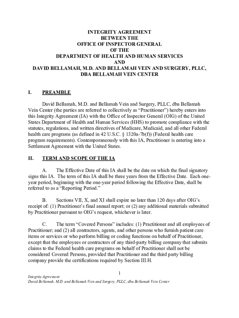 DAVID BELLAMY, M.D. AND BELLAMY VEIN AND SURGERY, LLC,