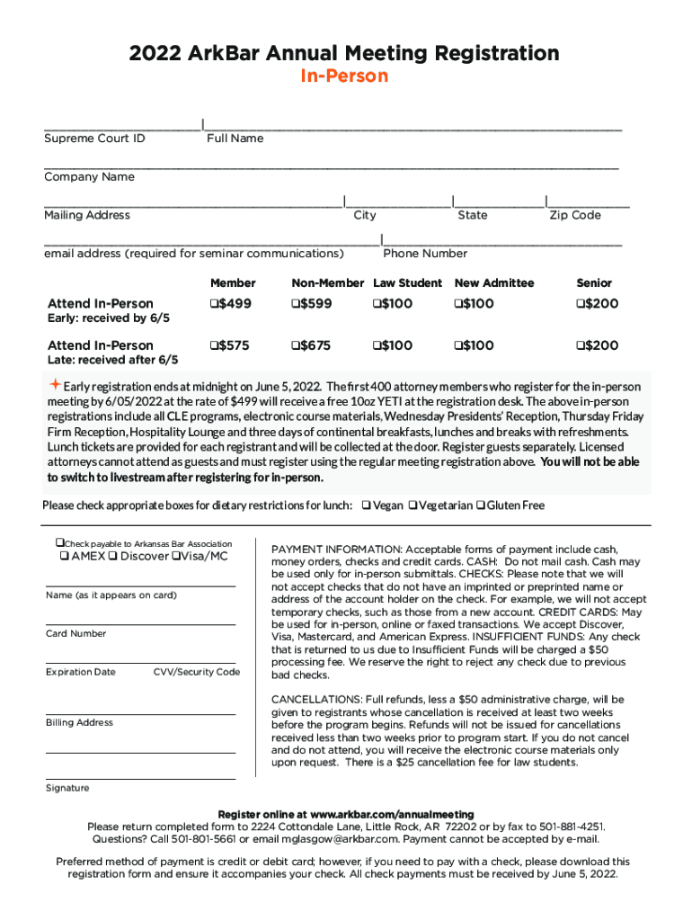 172022 Akbar Annual Meeting Registration Unperson___|___ Supreme Court Full Name___ Company Name___|___|___|___ Mailing AddressCityStateZip Code___|___ email address (required for seminar communications)Phone