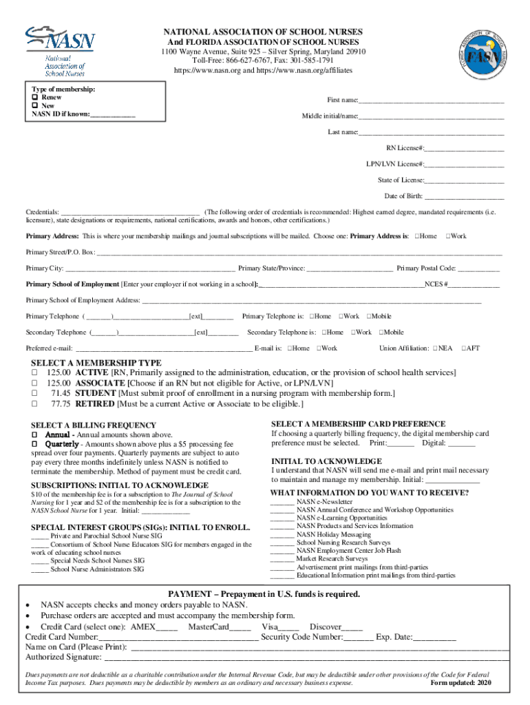 Get the free NATIONAL ASSOCIATION OF SCHOOL NURSES SELECT A ...