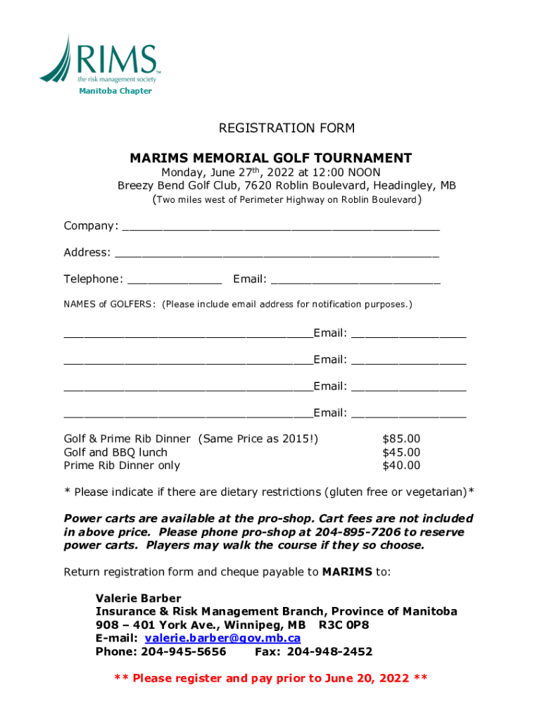 How to fill out marims memorial golf tournament