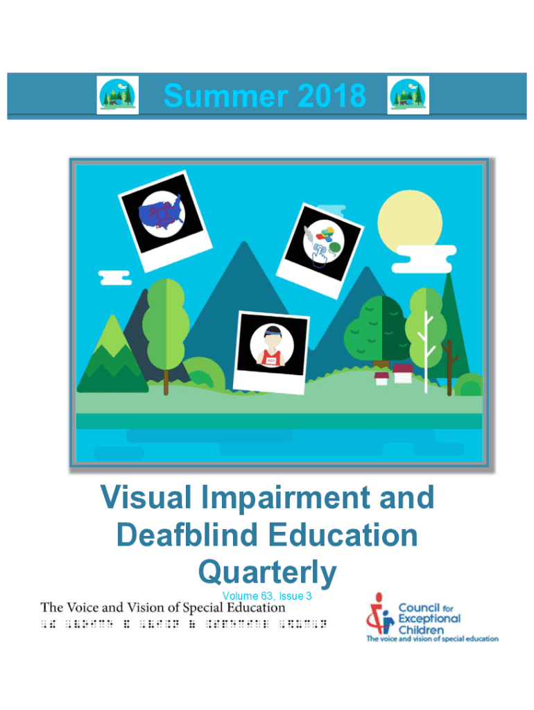 Summer 2018Visual Impairment and Deaf blind Education Quarterly Volume 63, Issue 31Table of Contents Volume 63, Issue 3 Page 2Message from the Editor4DVIDB Board Election Information7Presidents Message10DVIDB