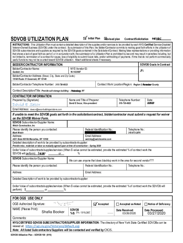 Get the free online.ogs.ny.gov DNC MWBEUtilizationPlansSDVOB UTILIZATION PLAN Initial Plan Revise...