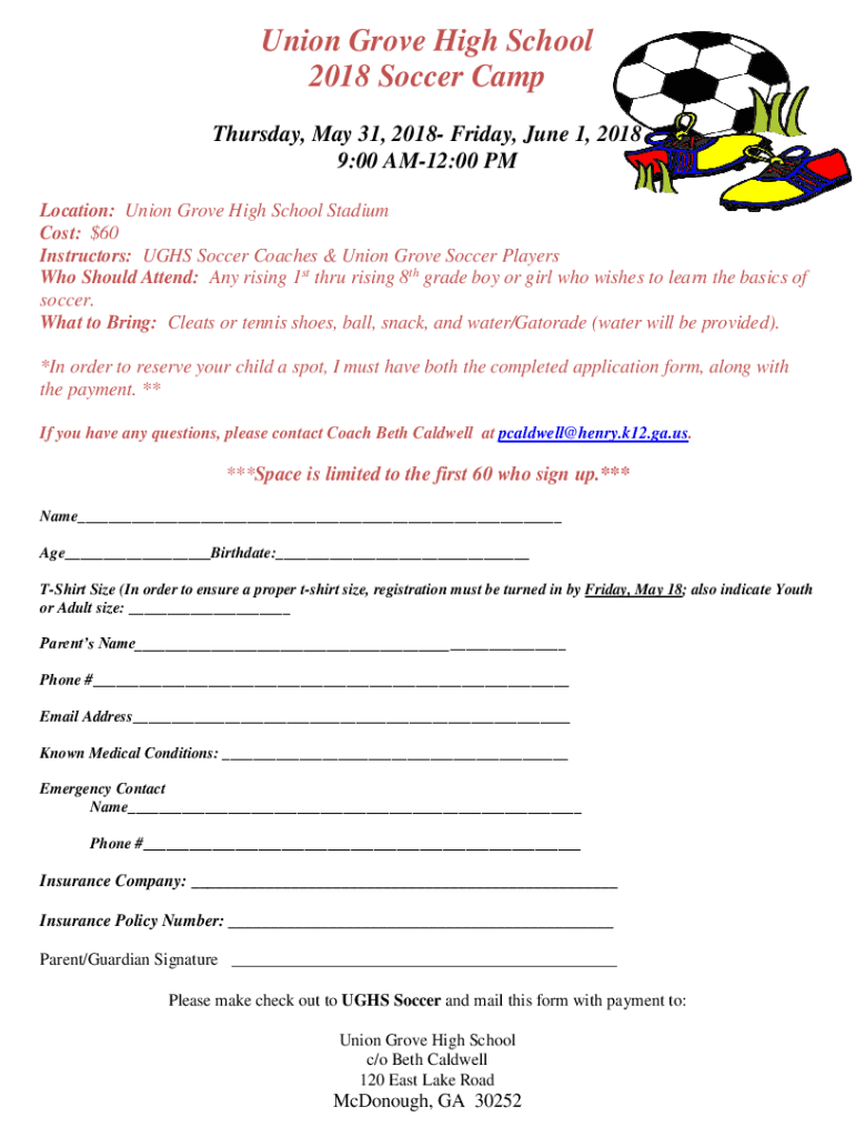 Get the free Union Grove High School 2018 Soccer Camp - schoolwires henry k12 ga