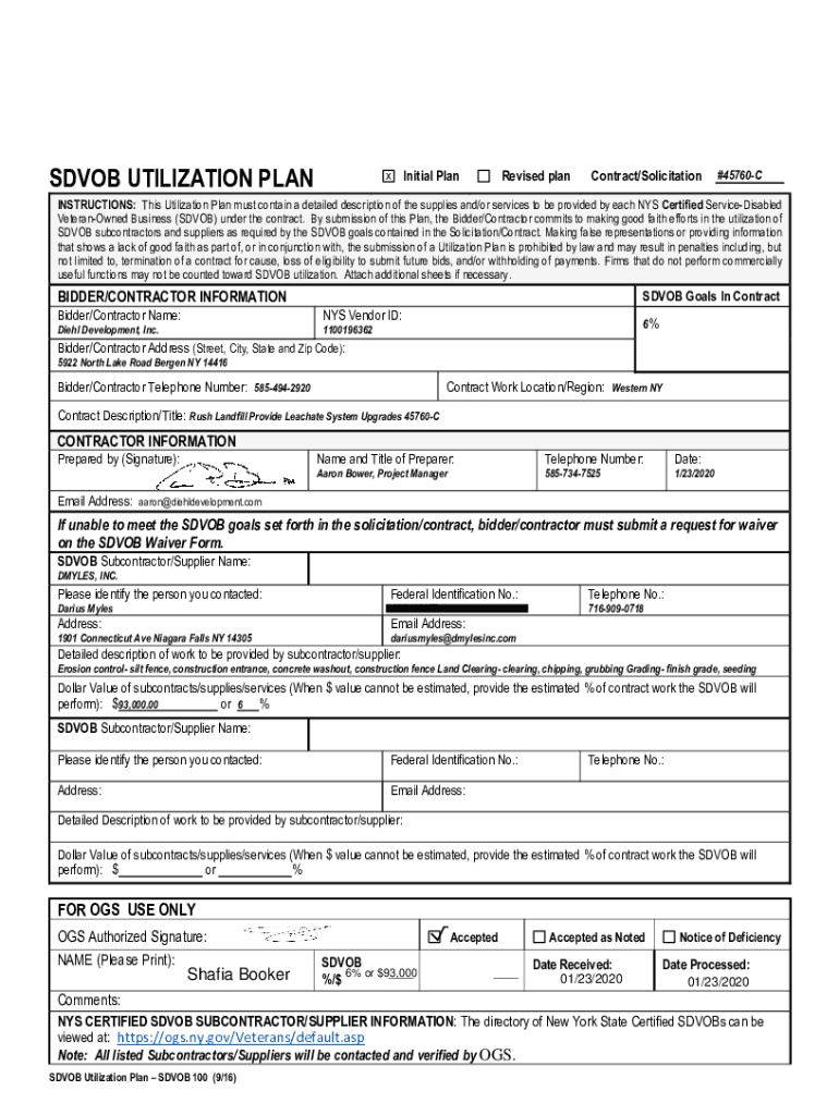 SD VOB UTILIZATION Plan Initial Prevised Bancontact/Solicitation#45760CINSTRUCTIONS: This Utilization Plan must contain a detailed description of the supplies and/or services to be provided by each