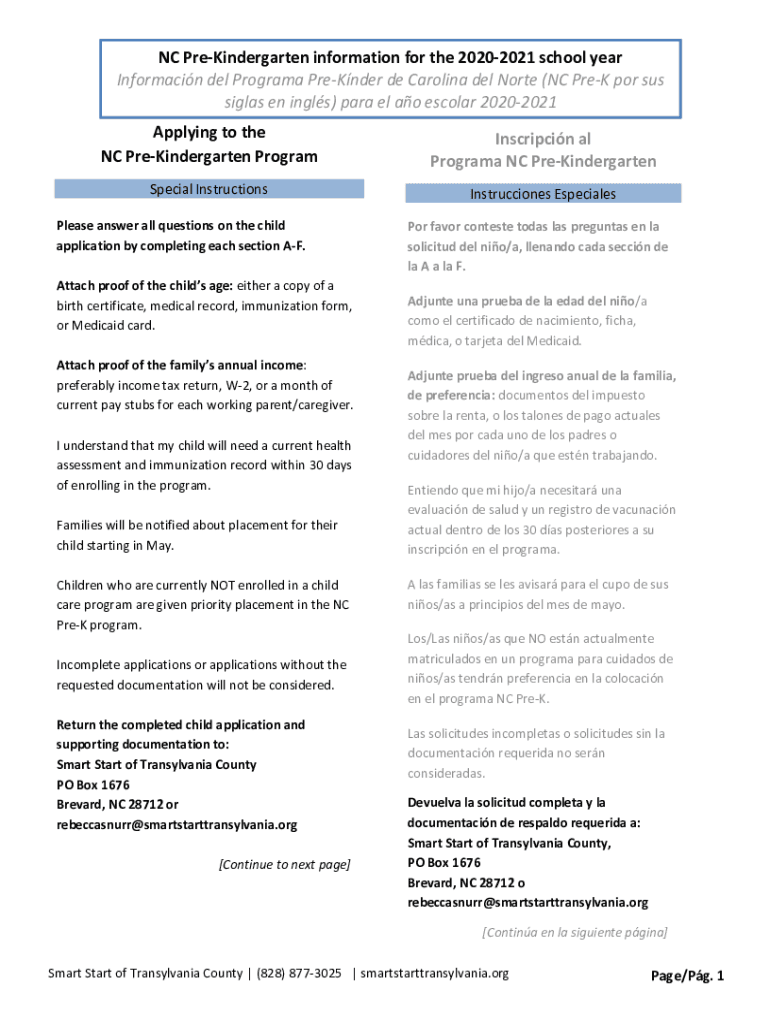 NC PreKindergarten information for the 20202021 school year Information Del Program Render de Carolina del North (NC Prey POR SUS Silas en single) para el AO escolar 20202021 Applying to the NC PreKindergarten