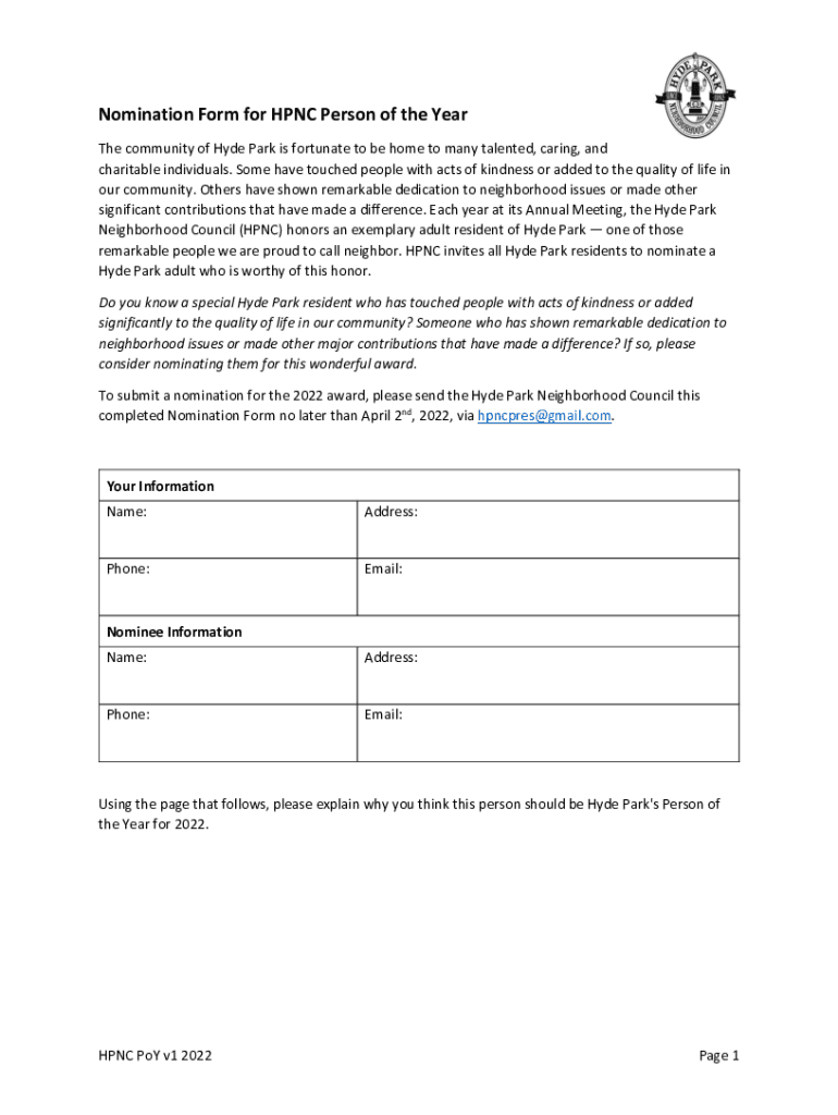 Get the free Nomination Form for HPNC Person of the Year - Webflow