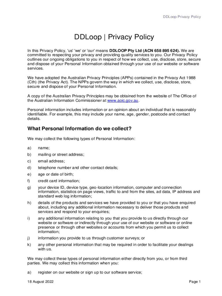 Ddloop Privacy Policy is not the form you're looking for?Search for another form here.