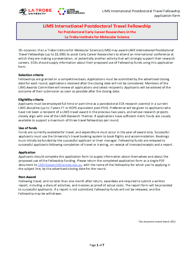 Get the free LIMS International Postdoctoral Travel Fellowship application form