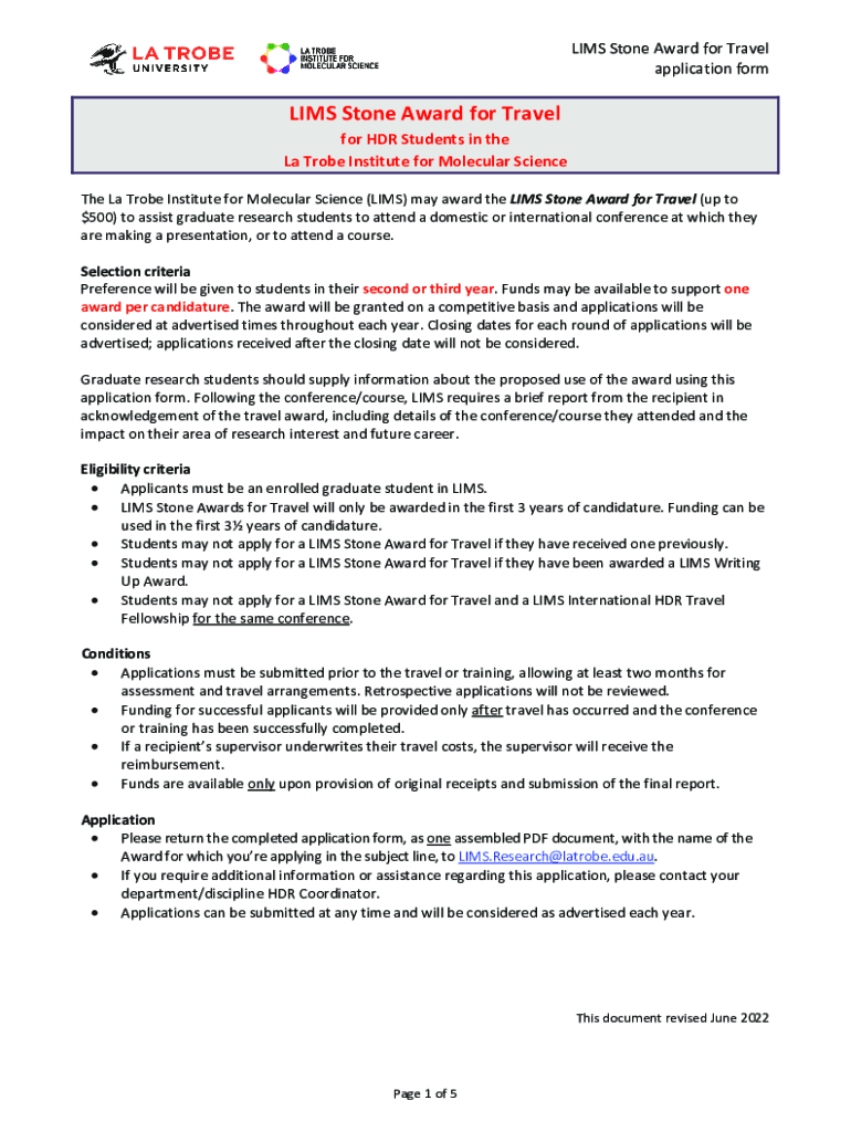 Get the free LIMS Stone Award for Travel application form