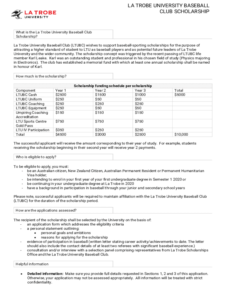 Get the free The La Trobe University Baseball Club Sporting Scholarship