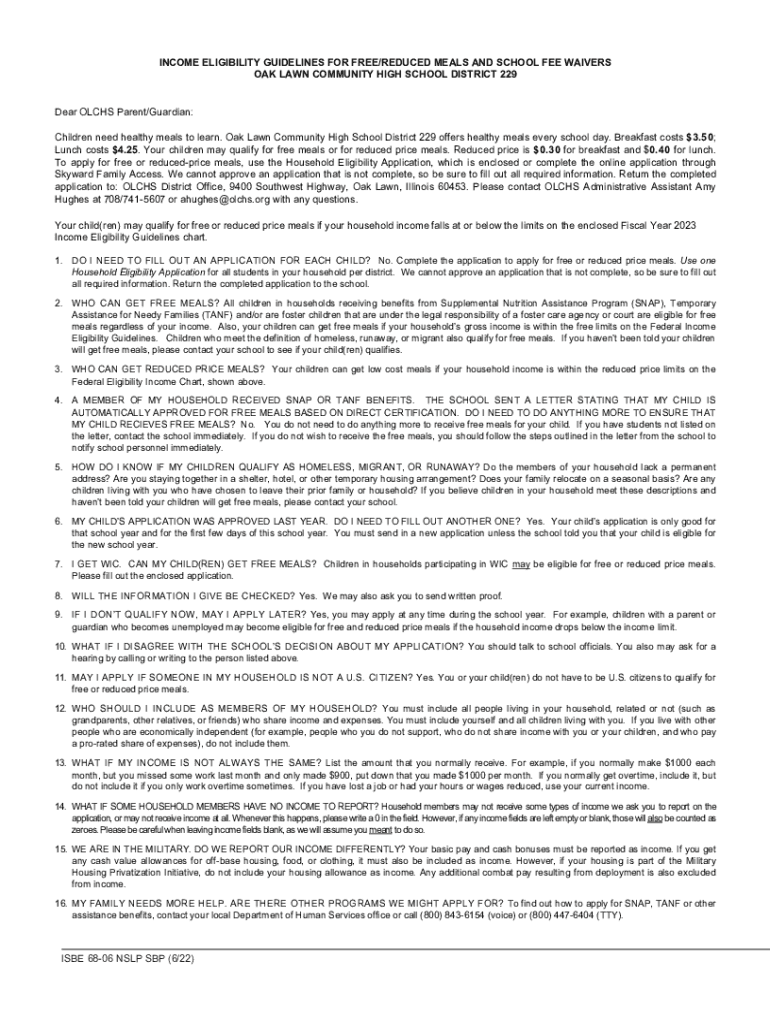 INCOME ELIGIBILITY GUIDELINES FOR FREE/REDUCED MEALS AND SCHOOL FEE WAIVERS OAK LAWN COMMUNITY HIGH SCHOOL DISTRICT 229Dear OATHS Parent/Guardian: Children need healthy meals to learn. Oak Lawn Community