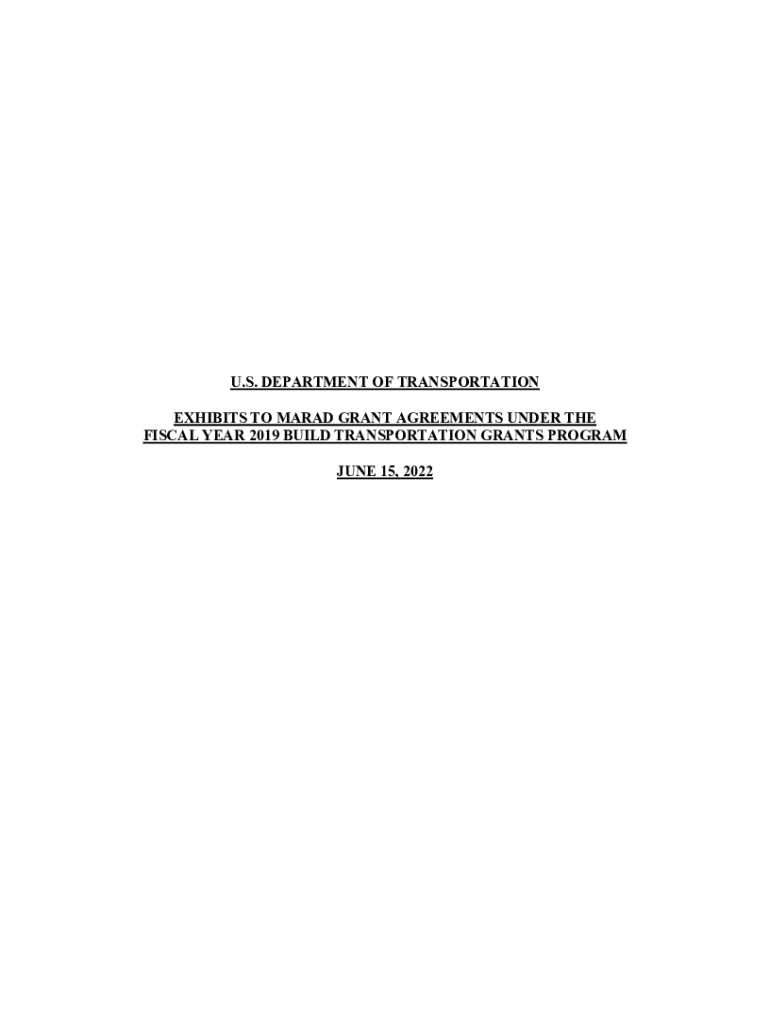 U.S. DEPARTMENT OF TRANSPORTATION EXHIBITS TO MARA GRANT AGREEMENTS UNDER THE FISCAL YEAR 2019 BUILD TRANSPORTATION GRANTS PROGRAM JUNE 15, 2022EXHIBIT A APPLICABLE FEDERAL LAWS AND REGULATIONS By