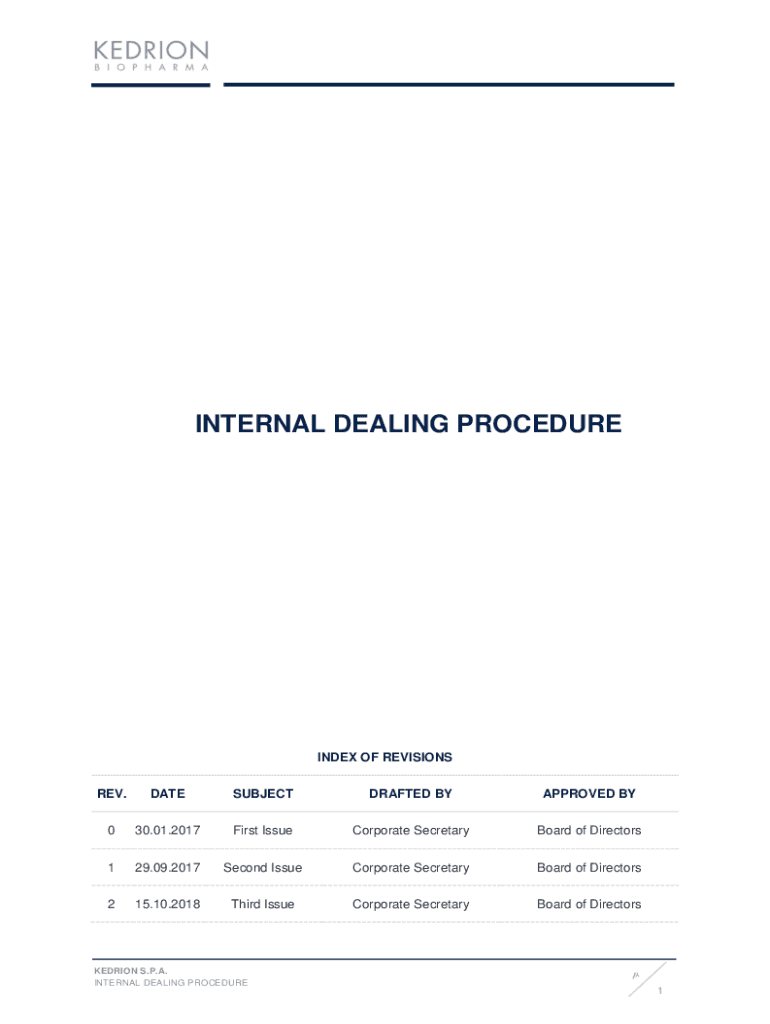 INTERNAL DEALING PROCEDUREINDEX OF REVISIONS