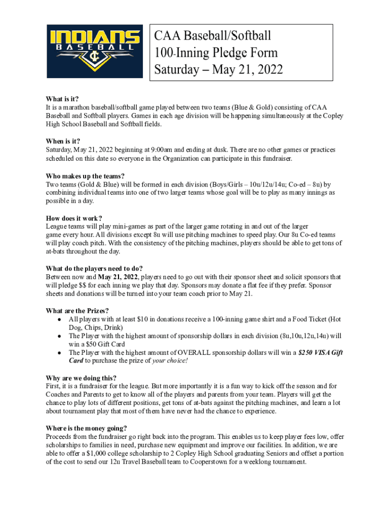 Get the free 2022 100 INNING GAME FUNDRAISER Player Pledge form.docx