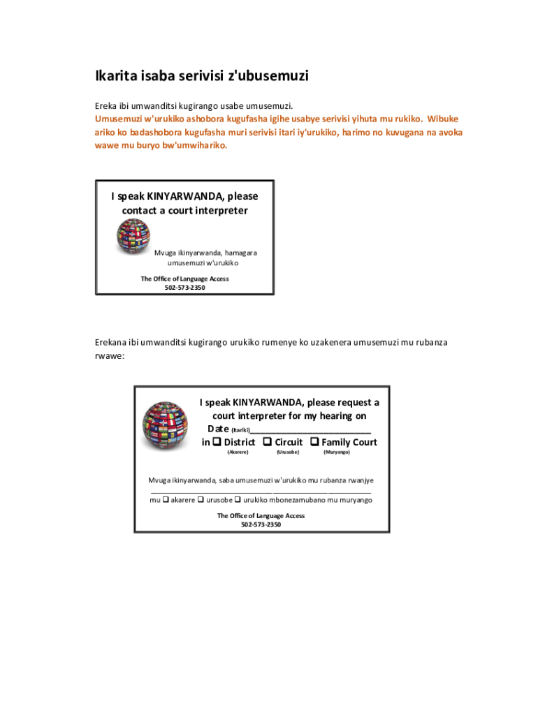 Get the free Ikarita isaba serivisi z'ubusemuzi - ky courts