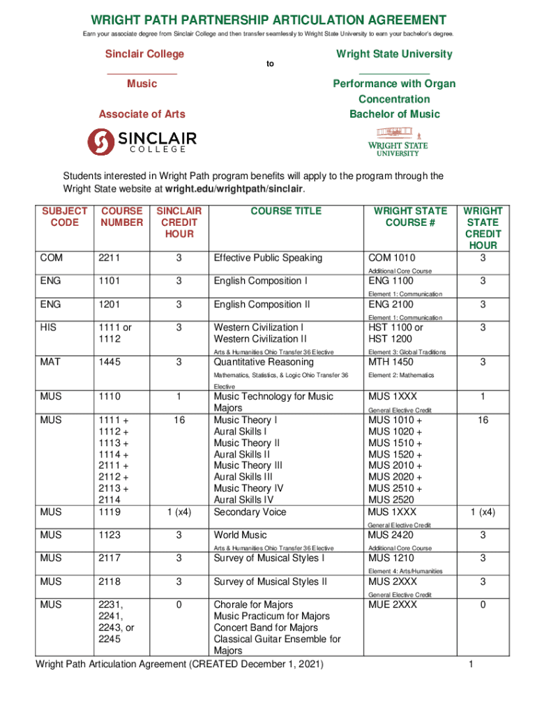 WRIGHT PATH PARTNERSHIP ARTICULATION AGREEMENT Earn your associate degree from Sinclair College and then transfer seamlessly to Wright State University to earn your bachelors degree. Sinclair College