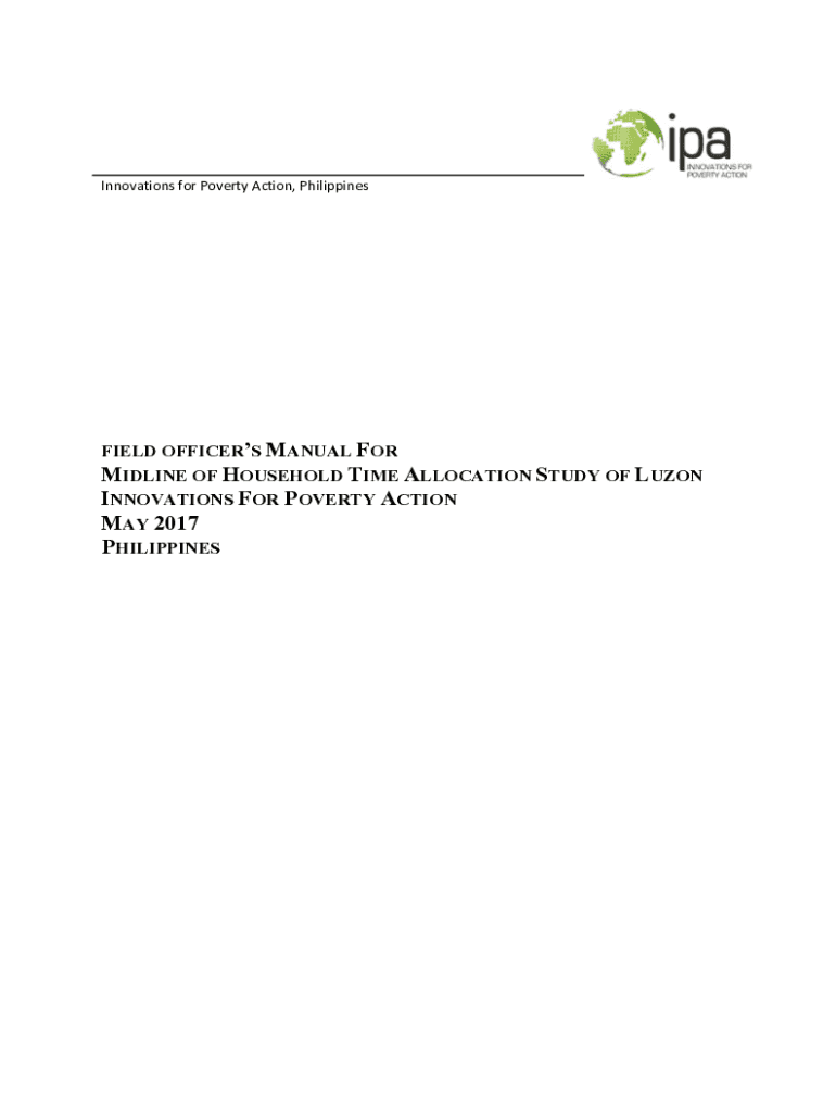 Innovations for Poverty Action, PhilippinesFIELD OFFICERS MANUAL FOR MIDLINE OF HOUSEHOLD TIME ALLOCATION STUDY OF LUZON INNOVATIONS FOR POVERTY ACTION MAY 2017 PHILIPPINESContents Part 1: Field Preparations
