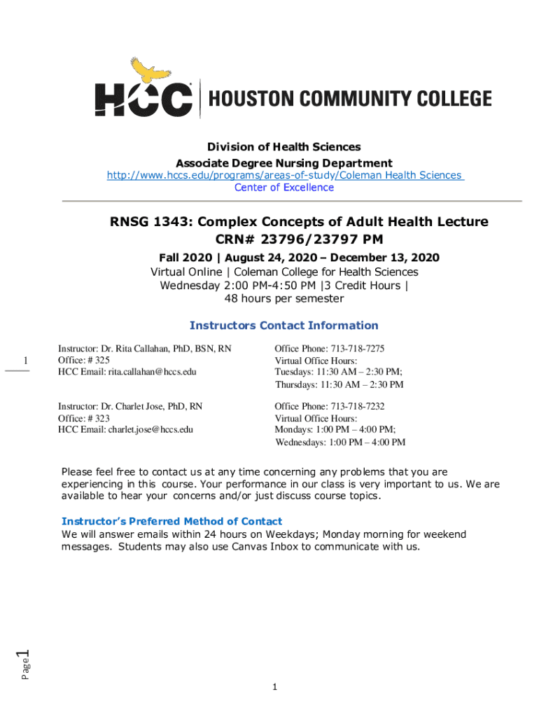 Division of Health Sciences Associate Degree Nursing Departmenthttp://www.hccs.edu/programs/areasofstudy/Coleman Health Sciences Center of ExcellenceRNSG 1343: Complex Concepts of Adult Health Lecture