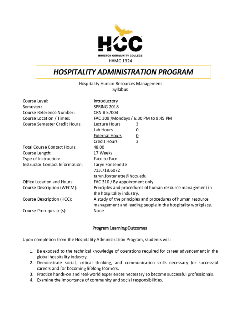 Get the free learning.hccs.edufacultythomasCourse Syllabus Hospitality Human Resource Management ...