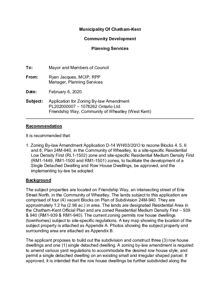 Municipality Of ChathamKent Community Development Planning Services:Mayor and Members of Councilor:Ryan Jacques, MCP, RPP Manager, Planning ServicesDate:February 6, 2020Subject:Application for Zoning