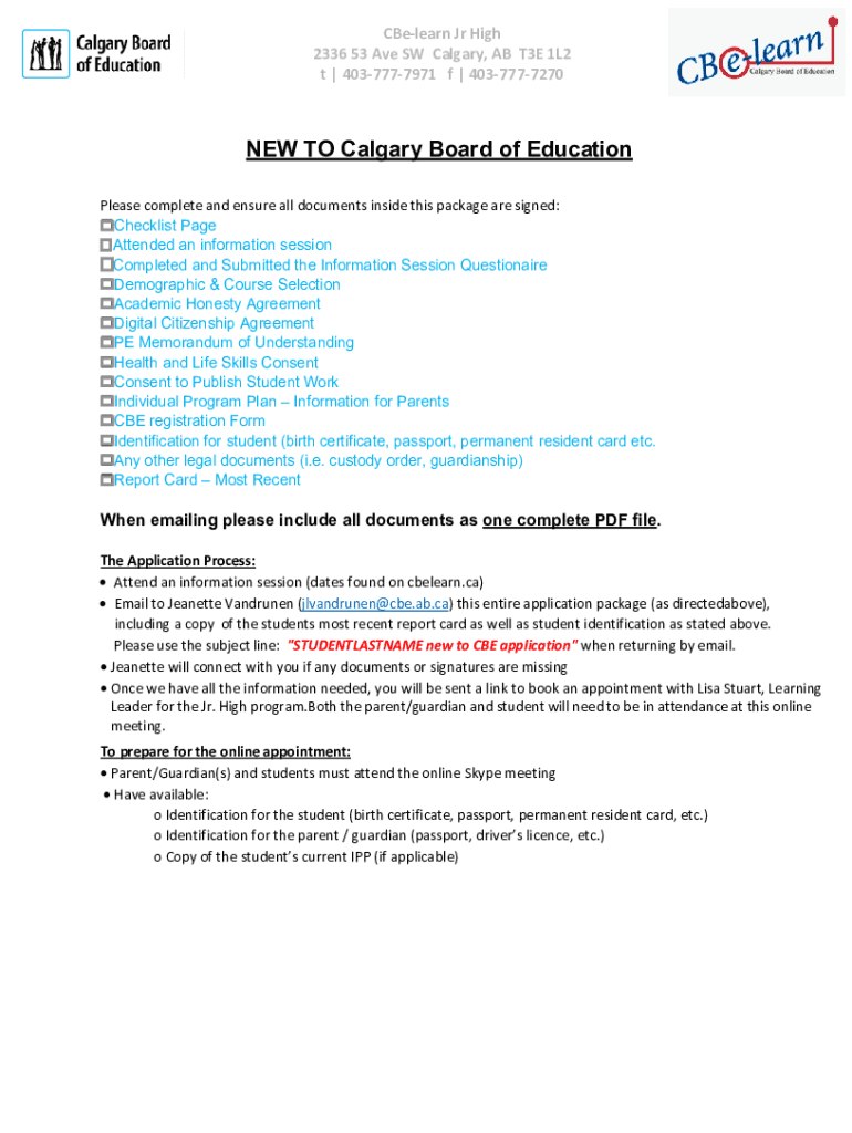 Relearn Jr High 2336 53 Ave SW Calgary, AB T3E 1L2 t | 4037777971 f | 4037777270NEW TO Calgary Board of Education Please complete and ensure all documents inside this package are signed: Checklist