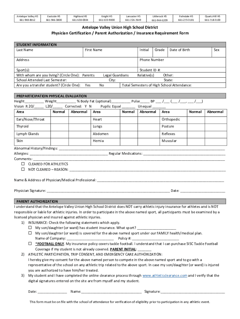 Get the free Antelope Valley Union High School District Physician ... - Ngin