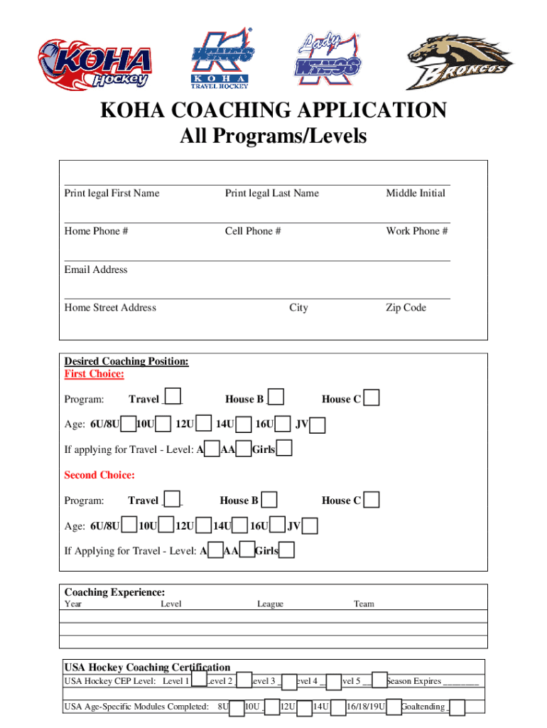 Fill out your koha coaching application all online with pdfFiller!