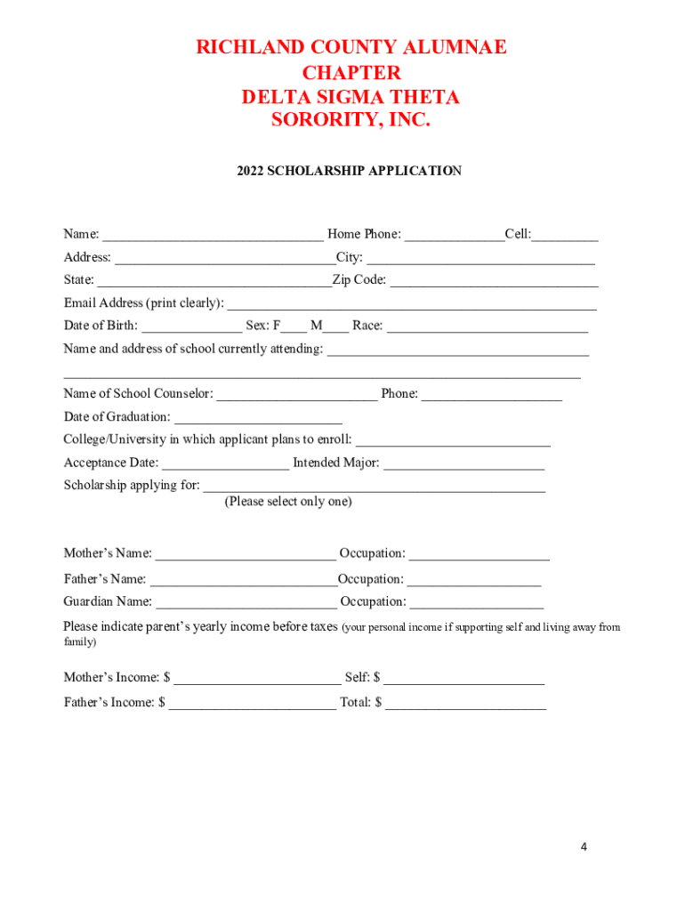 Delta Sigma Theta Sorority, Inc. Richland County Alumnae Chapter PO Box 777 Columbia, South Carolina 29202February 1, 2022Dear School Counselor, The Richland County Alumnae Chapter of Delta Sigma