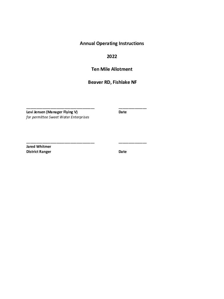 Get the free Annual Operating Instructions 2022 Ten Mile Allotment Beaver RD ...