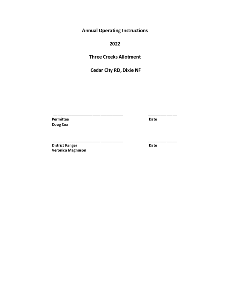 Get the free Annual Operating Instructions 2022 Three Creeks Allotment ...