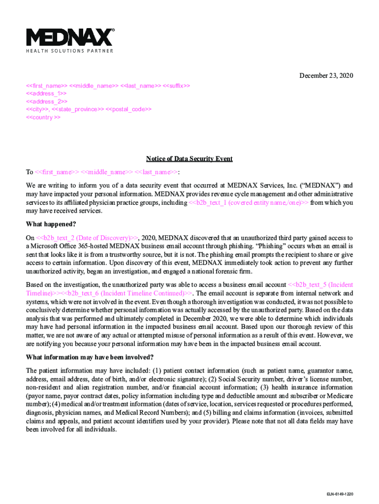 Get the free Notice of Data Security Event - Attorney General of California - oag ca