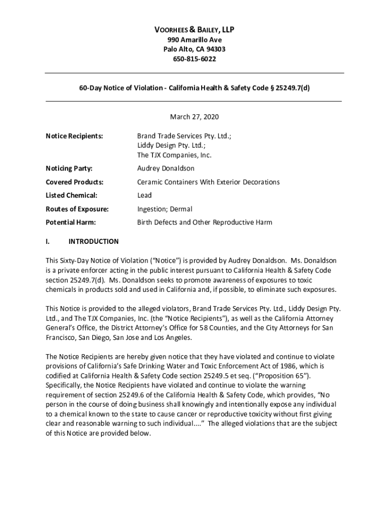 650815602260Day Notice of Violation California Health & Safety Code 25249.7(d)