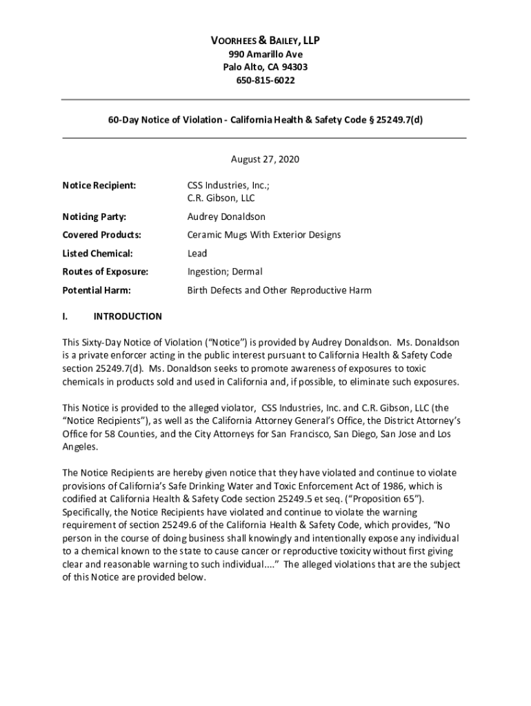 650815602260Day Notice of Violation California Health & Safety Code 25249.7(d)